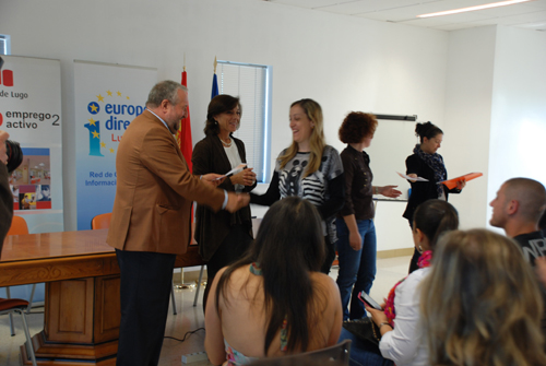 O Alcalde, José López Orozco, e a Concelleira de Educación e Orientación Laboral, Esther Muñoz, entregaron hoxe os diplomas ós participantes nos cursos do programa de formación e inserción laboral “Lugo emprego activo 2”, que cofinancia o Fondo Social Europeo.