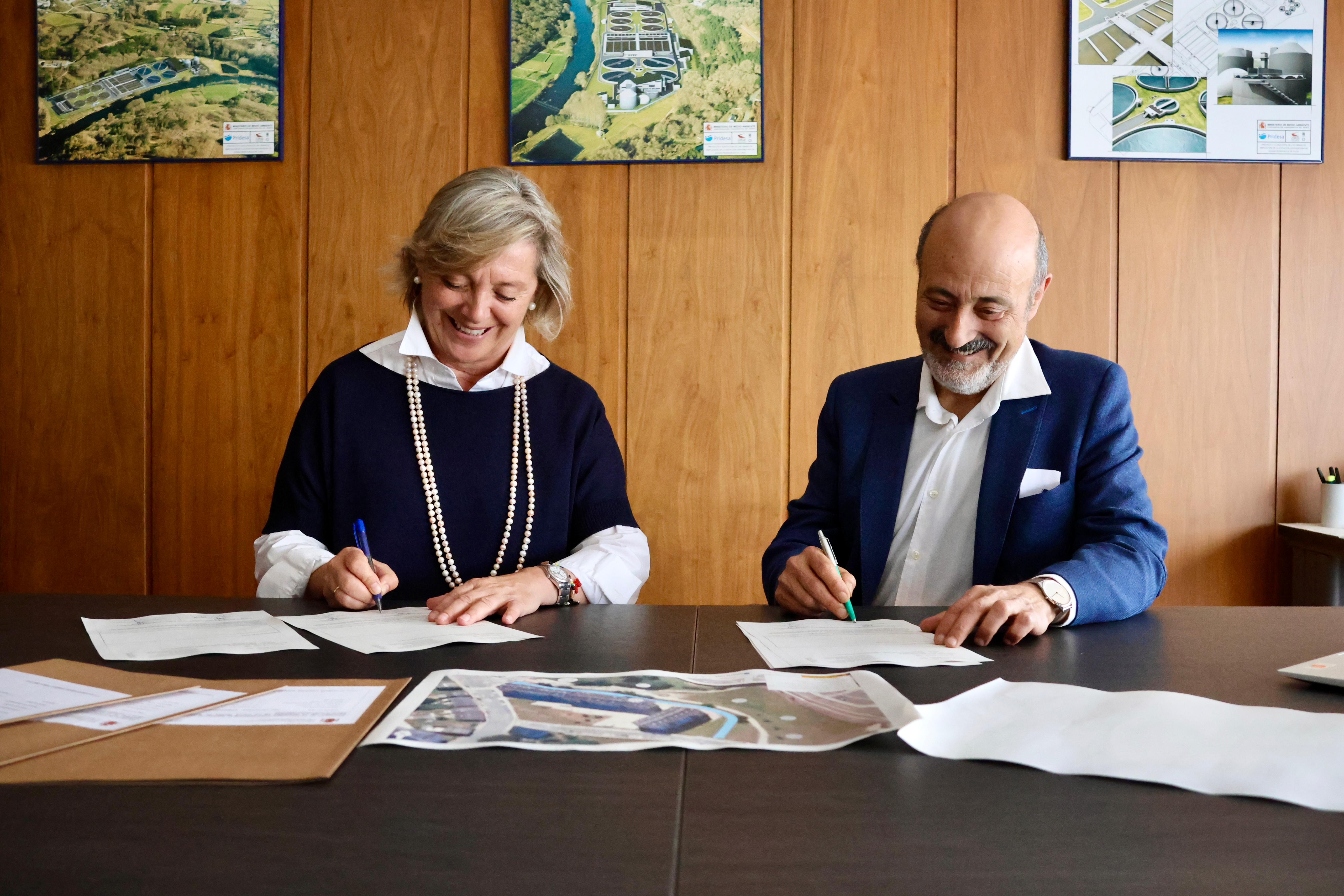 La alcaldesa y el presidente del Organismo de Cunca firmaron esta mañana las actas de ocupación necesaria para el proyecto, un trámite que supone a juicio de ambos "un gran avance en el desarrollo urbanístico de la zona".