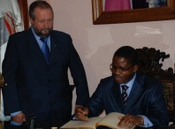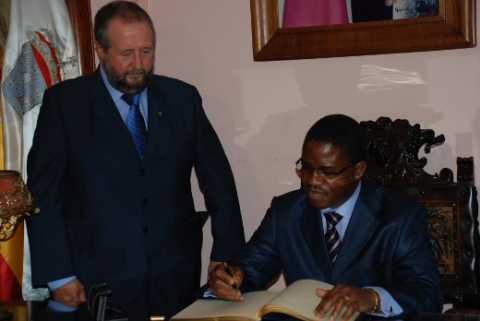El político camerunés firmó en el Libro de Honor del Ayuntamiento en el que expresó su agradecimiento por la acogida que tuvo en Lugo y por ser recibido “en este edificio que representa a la ciudad”.
