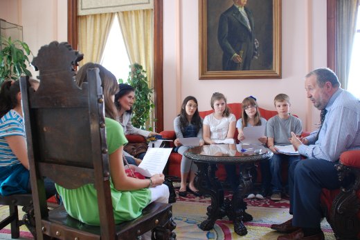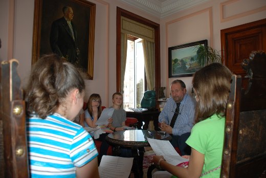 El Alcalde de Lugo, Xosé López Orozco, les explicó la un grupo de niños del CEIP de la Anexa, la importancia para la ciudad de la conservación de los monumentos que tiene la ciudad. El Alcalde habló con los rapaces de la Muralla y el décimo aniversario de su declaración como Patrimonio Mundial en una distendida entrevista que le hicieron en su despacho oficial.