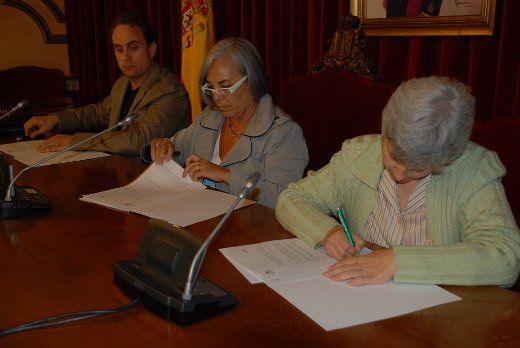 La Concejal de Bienestar Social e Igualdad, Carmen Basadre, Fernando Pérez de la Asociación Dignidad Lugo, y Concepción Muñoz, de la Asociación Valponasca, firmaron un convenio de colaboración para la realización de actividades de promoción de la salud y prevención de drogodependencias.