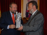 Asimismo, el gerente de Asogal recibió de manos del Alcalde el título de embajador de la Muralla Romana acompañado de un diploma acreditativo y un regalo institucional de cerámica.