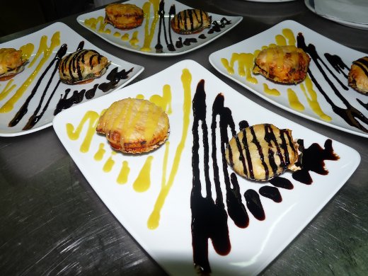 - Restaurante MANUEL MANUEL, por la tapa Fardelo Mareiro, feita de filloa de tinta de calamar rechea de marisco e verduras con guarnición e crema de whisky.