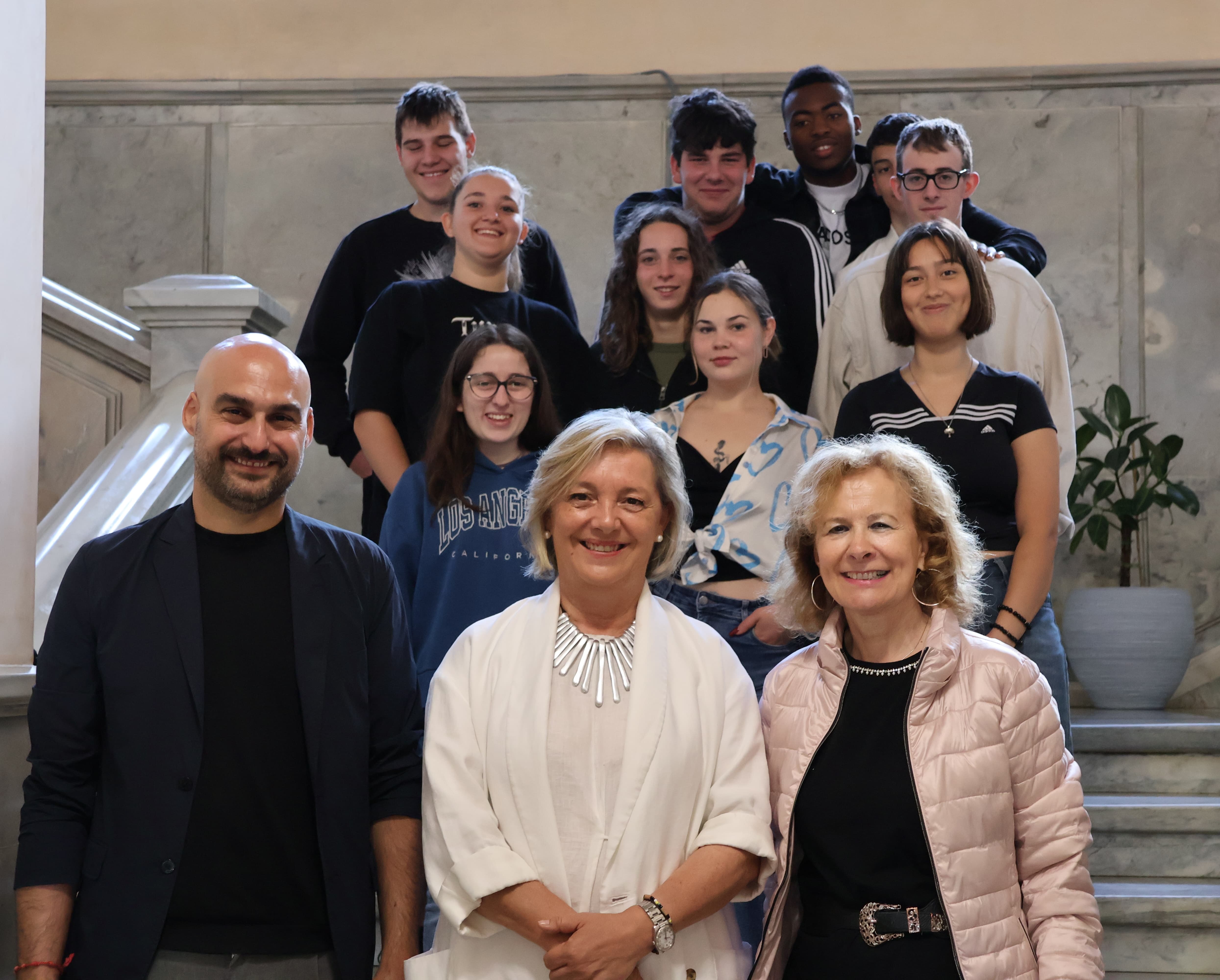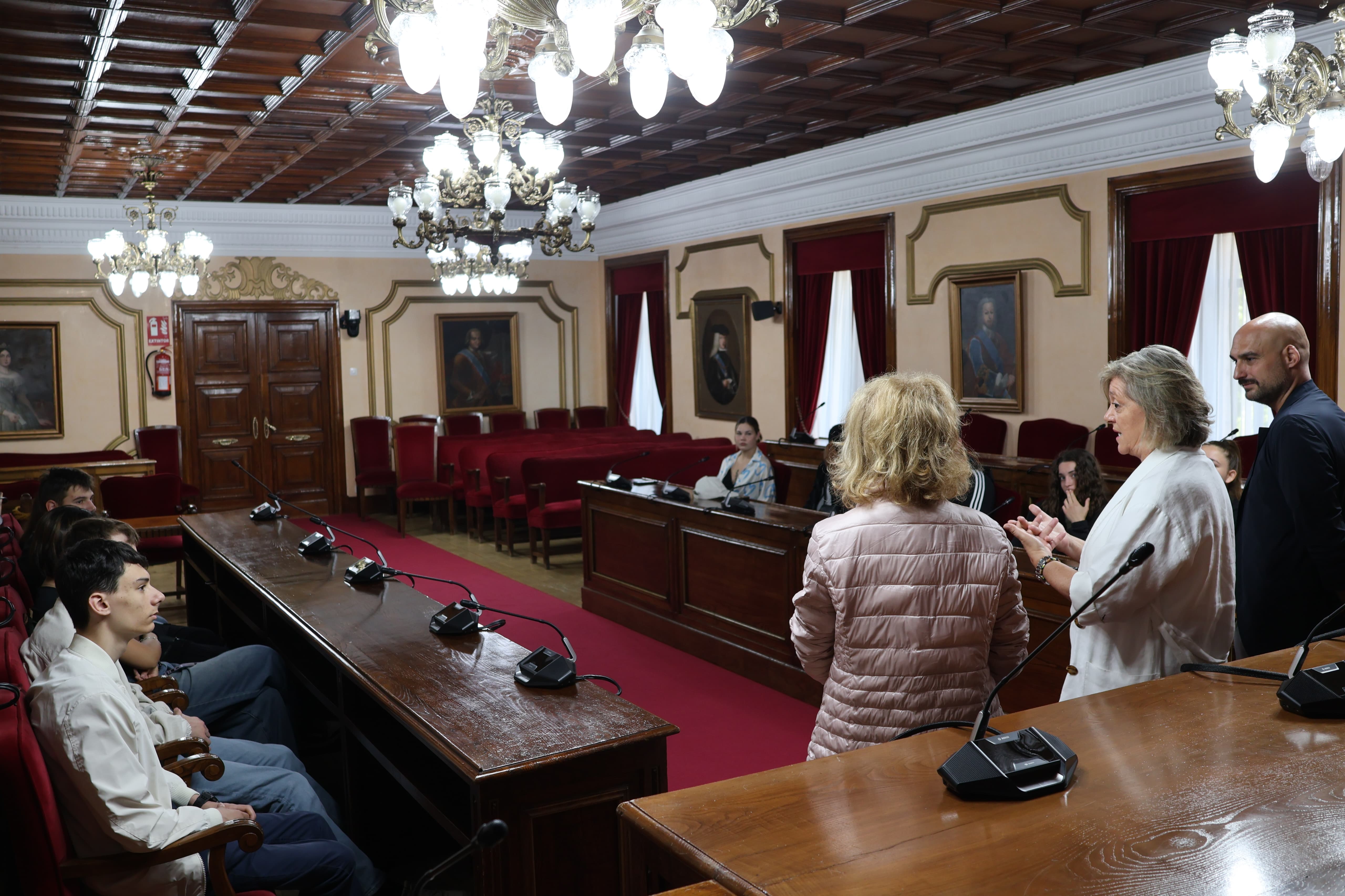 La alcaldesa de Lugo, Paula Alvarellos, recibió esta mañana en el Salón de Plenos del Ayuntamiento de Lugo a los once estudiantes italianos que durante un mes hicieron sus prácticas de FP en empresas de Lugo, dedicados a los sectores de la hostelería, carpintería metálica, estética y mecánica, dentro del programa Erasmus Plus. En la recepción, en la que también estuvo el concelleiro de Dinamización Económica, Mauricio Repetto, los alumnos y alumnas, procedentes de la escuela de Formación Profesional Lepido Rocco, de Treviso, en la región de Véneto, explicaron cómo fue su experiencia laboral en Lugo y la alcaldesa se interesó además por la impresión que se llevan de la ciudad de Lugo.
