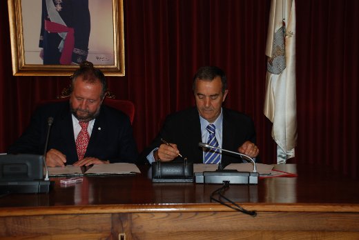 El Ayuntamiento de Lugo y la empresa Monbús firmaron hoy un convenio de colaboración por el que el grupo de transporte de viajeros se suma al patrocinio del programa Lugo10 que conmemora el décimo aniversario del reconocimiento de la Muralla como Patrimonio Mundial.