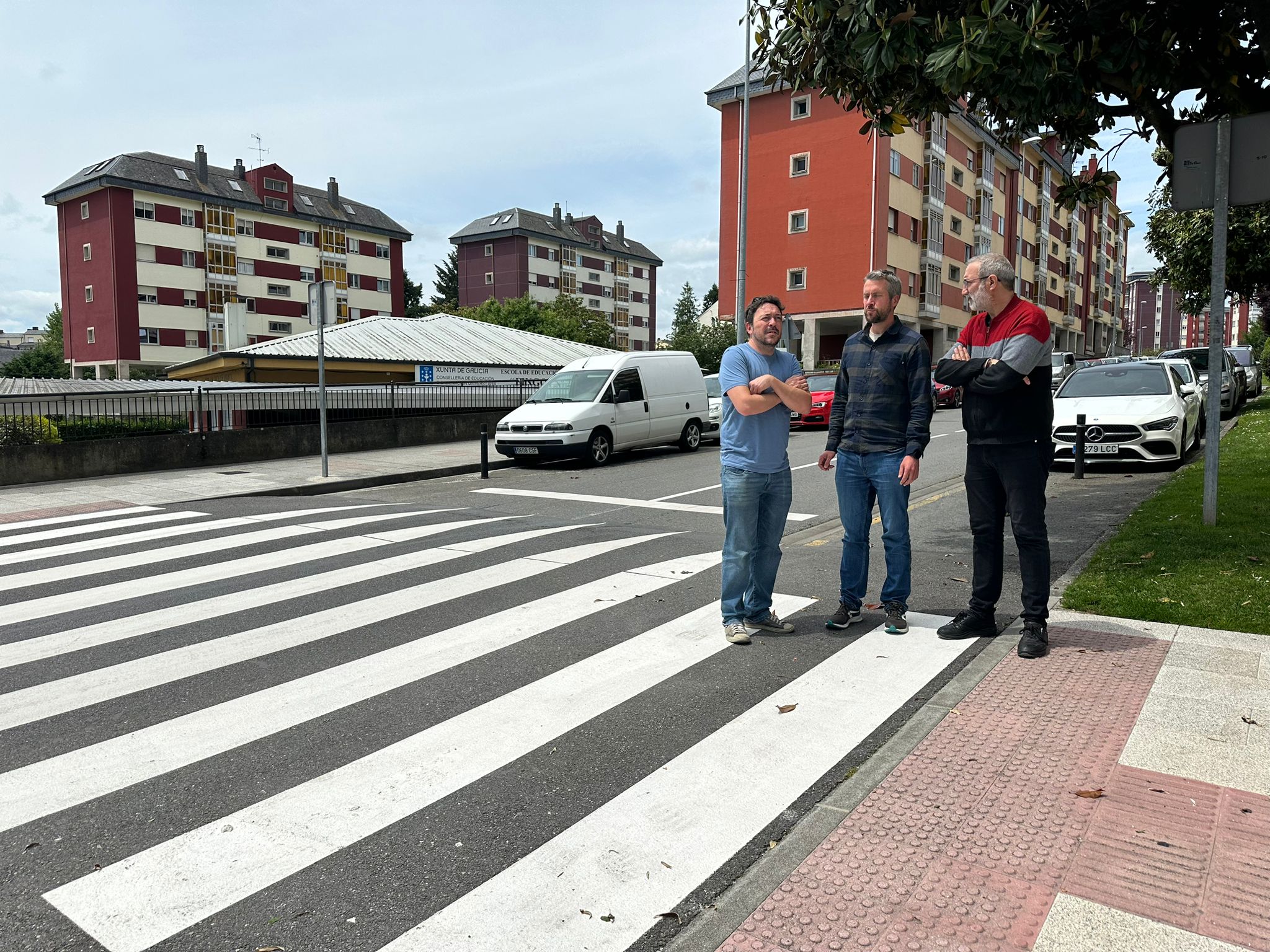 El Teniente de Alcalde del Ayuntamiento de Lugo, Rubén Arroxo, y el concejal de Infraestructuras Urbanas, Alexandre Penas, visitaron la Avenida de Madrid, donde en los últimos días se llevó a cabo la renovación integral de la señalización horizontal de la zona. Arroxo destacó que esta intervención permite "mejorar la visibilidad en la calle, tanto para peatones como para vehículos, lo que implica una mayor seguridad vial".