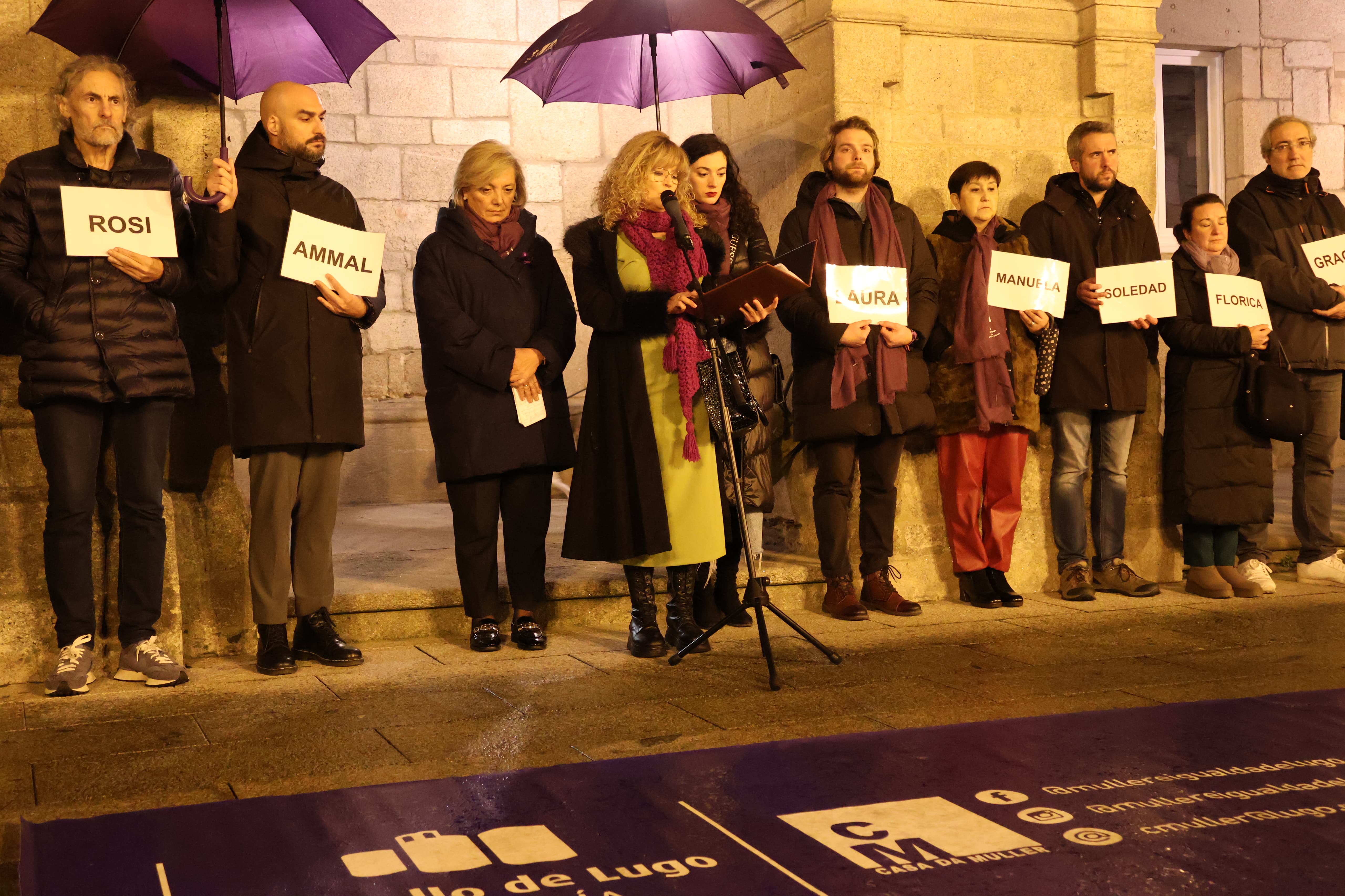 La concejal Ángeles Novo fue la encargada de abrir el acto institucional frente al Ayuntamiento de Lugo recordando "a las 42 mujeres asesinadas en lo que va de año, y haciendo hincapié en que estos asesinatos no atienden a condiciones ni fronteras, ya que la violencia machista se trata de un problema a nivel mundial, un fenómeno universal que impide una igualdad real, que atenta contra la paz y también contra los derechos humanos de mujeres y niñas". Por su parte, la alcaldesa de Lugo incidió en que "hay que hablar alto y claro contra las problemáticas que alimentan el maltrato; erradicar el negacionismo machista y la brecha salarial; y potenciar los recursos a las víctimas y a las políticas igualitarias".