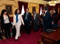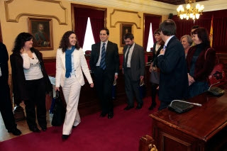 La Alcaldesa accidental, Sonia Méndez, y otros miembros de la Corporación Municipal recibieron hoy en la Casa del Ayuntamiento a una delegación de la Federación de Asociaciones de Periodistas Españoles. En esta visita oficial que tuvo lugar a las 13.30 horas en el Despacho de Alcaldía participaron la Presidenta de la Federación, Magis Iglesias, el Secretario General de la FAPE, Javier Arenas, y el Vocal, Luis Menéndez.