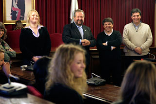El Alcalde de Lugo, José López Orozco, recibió en el Salón de Plenos de la Casa del Ayuntamiento a los estudiantes de la ciudad sueca de Täby, que participan en el programa de intercambio entre el centro sueco Tibble Gymnasium y el IES Nuestra Señora de los Ojos Grandes de Lugo.