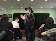 Peter Roberts consiguió con su actuación que 450 alumnos y alumnas de tercero y cuarto de la E.S.O participaran activamente favoreciendo así su reflexión crítica sobre el consumo excesivo del alcohol a través de las representaciones de situaciones cotidianas utilizando el mimo.