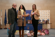 A Concelleira de Benestar Social e Igualdade, Ana González Abelleira, recolleu esta mañá de man da Vicepresidenta Segunda da Deputación de Lugo, Lara Méndez, e do músico e director de Sons Galicia, Eloi Caldeiro, os agasallos adquiridos coa recadación obtida da venda do CD Cantos de Nadal para o seu reparto entre os nenos das familias máis desfavorecidas do Concello.