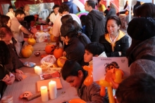 Pese a chuvia, ducias de cativos participaron pola tarde na praza da Soidade nos obradoiros de cabazas, recortables e pintado de facianas organizados polas asociacións de recreación castrexa Trebas Galaicas, Caetra Lucensium, Lugdunum e Lucus Equites