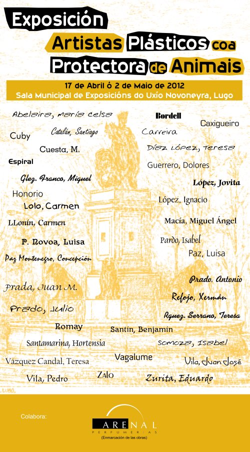 Un total de 39 artistas cederon as súas obras para esta mostra, na que colabora a área de Cultura do Concello de Lugo. Na inauguración desta iniciativa, o tenente alcalde, o nacionalista Antón Bao, destacou “o grande nivel artístico da mostra” e a súa “vertente solidaria”. Os artistas que participan na exposición doaron as súas obras para que os beneficios obtidos pola súa venda vaian a parar á Protectora de Lugo.
