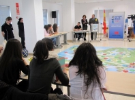 O Alcalde, José López Orozco, e a Concelleira de Educación, Formación e Orientación Laboral, Esther Muñoz, visitaron hoxe ós estudantes que participaron na final provincial do concurso “Xogamos por Europa”