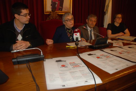 A Concelleira de Cultura, Turismo, Xuventude e Promoción da Lingua, Carmen Basadre, acompañada polo vicerreitor de Coordinación do campus de Lugo, Pedro García Herradón, o deputado da Área de Cultura e Turismo da Deputación de Lugo, Mario Outeiro, e a coordinadora da Aula de Teatro da Universidade de Santiago de Compostela no campus de Lugo, Paloma Lugilde, presentaron esta mañá a XIX Festival Internacional de Teatro Universitario.