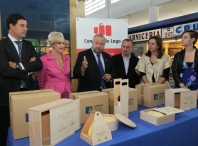 O Alcalde, José López Orozco, e o Presidente da Deputación provincial, José Ramón Gómez Besteiro, entregaron hoxe a primeira tanda de caixas de madeira decoradas a comerciantes do Casco histórico para que as empreguen como envase dos produtos autóctonos que teñen á venda. O acto celebrouse esta mañá na Praza de Abastos.