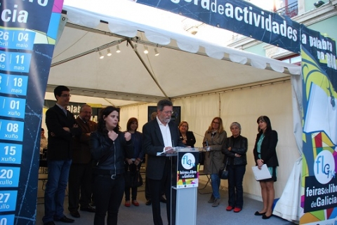 O Alcalde, José López Orozco, e a Concelleira de Cultura, Turismo, Xuventude e Promoción da Lingua, Carmen Basadre, xunto con outras autoridades, participaron esta tarde no acto inaugural da 32ª Feira do Libro de Lugo que estará instalada na Praza Maior ata o domingo, día 18 de maio.