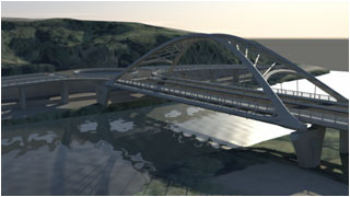 En la margen izquierda, por la que discurre la circunvalación de Lugo de la N-VI, el terreno es abrupto con grandes desniveles y pendientes. El puente proyectado atraviesa el río y conecta ambas laderas donde se construyen, en cada uno de los extremos del puente, sendas glorietas.