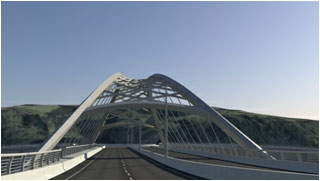 La longitud total del nuevo puente metálico es de 195 metros, distinguiéndose dos tramos: uno de 95 metros de longitud sobre el cauce del río Miño, con una tipología estructural de arco parabólico con tablero inferior, y otro, de 100 metros, que es un viaducto de acceso al puente arco, con un esquema estructural tipo viga-cajón con dos vanos de 50 metros de luz y cuya principal función es la de minimizar la ocupación de los terrenos en la ladera derecha del río, permitiendo la máxima permeabilidad en esta zona. Estéticamente la imagen exterior del tablero es la misma en los 195 metros de longitud total del puente.