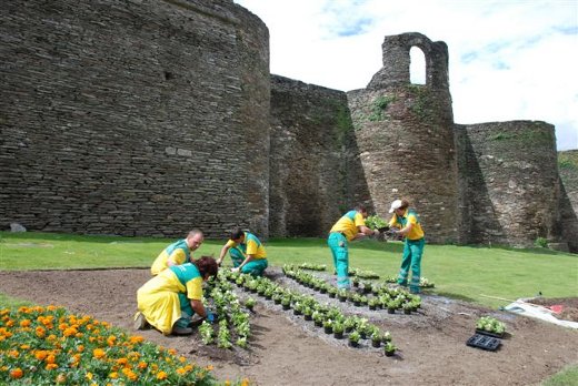 Traballadores de Calfensa plantaron hoxe o logotipo de Lugo10 ó pé da Muralla. Os xardineiros plantaron ás flores nos xardíns da Mosqueira nunha nova mostra de apoio da empresa Calfensa á conmemoración do décimo aniversario da declaración da Muralla de Lugo como Patrimonio Mundial pola UNESCO. A petición do Concello, Calfensa accedeu a representar o logotipo de Lugo10 con flores a maiores do convenio de colaboración que ten asinado para patrocinar o programa de actividades de Lugo10.