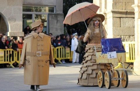 Non hai dúbida de que os participantes traballaron con esforzo nos seus disfraces, en moitos casos empregaron materiais reciclados como tapóns de plástico e corcho, como Taponman, Dama Encorchetada ou Éche unha risa; o cartón foi o elemento principal nos traxes de As belezas da reciclaxe e nos de Reciclando Cartón, así como o papel no xigantesco cempés de Gusaneando. A Muralla foi a fonte de inspiración para os compoñentes da Pasarela Lucus Augusti, a máis numerosa con 40 integrantes, e na que cada un deles luciu un sombreiro distinto que reproducía a Muralla. Cada un deles estaba fabricado con materiais diferentes, dende moedas de chocolate ou froitos secos, a purpurina o papel de seda.