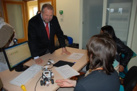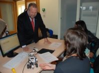 O Alcalde, José López Orozco, e a Concelleira de Educación, Formación e Orientación Laboral, Esther Muñóz, acompañados por Manuel Díaz Regueiro, Presidente de IGACIENCIA, e de María José Mariño, Directora de Investigación da Fundación Barrié, visitaron o obradoiro A maxia da robótica que se desenvolve estes días no CEI-Nodus e que está organizada pola Institución Galega da Ciencia (IGACIENCIA).