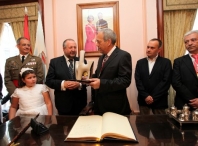 Logo de asinar no Libro de Honra do Concello, no despacho da Alcaldía, o Alcalde de Betanzos, que estivo acompañado de varios membros da Corporación da Cidade dos Cabaleiros, agradeceulle “ó Alcalde, á Corporación e a todo Lugo a acollida magnífica que recibín”. Pola súa parte, o Alcalde de Lugo lembrou a importancia desta histórica Ofrenda que fan as sete capitais do Antigo Reino de Galicia. “Xa van case 350 anos desta cerimonia civil e relixiosa, xa que somos quen de aunar as dúas cousas”, subliñou López Orozco.