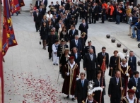 Tralos actos no Concello, saíu a comitiva ata a Catedral, onde tivo lugar a cerimonia relixiosa na que o Delegado Rexio fixo a Ofrenda ó Santísimo Sacramento.