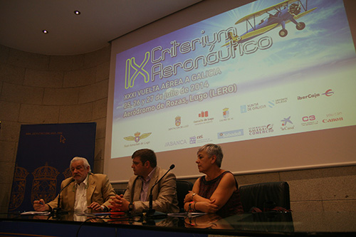 A Concelleira de Cultura, Turismo, Xuventude e Promoción da Lingua, Carmen Basadre; o Deputado de Cooperación e Asistencia ós Concellos, Álvaro Santos, e o Presidente do Real Aeroclub de Lugo, Luis Abelleira Mayor, presentaron este xoves o IX Criterium Aeronáutico. Este evento deportivo, organizado polo Aeroclub de Lugo coa colaboración do Concello e a Deputación provincial, celebrarase entre os días 24 e 27 de xullo nas instalacións do Aeródromo de Rozas.