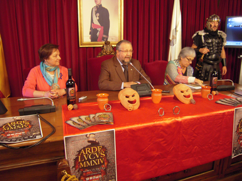 O Alcalde de Lugo, José López Orozco, e a Concelleira de Cultura, Turismo, Xuventude e Promoción da Lingua, Carmen Basadre, presentaron esta mañá o programa do Arde Lucus 2014, festa que acada este ano a súa decimoterceira edición co recoñecemento de Festa de Interese Turístico Galego e que se desenvolverá dende o 13 ao 15 de xuño. No acto tamén estivo a Deputada de Deseño e Artesanía, Regina Polín.