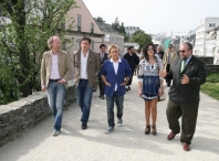 O Alcalde de Lugo, José López Orozco, e o Presidente da Deputación Provincial, José Ramón Gómez Besteiro, acompañaron aos deseñadores Victorio & Lucchino e a cantante do Incio que representará a España en Eurovisión, Lucía Pérez, nun paseo pola Muralla Romana.