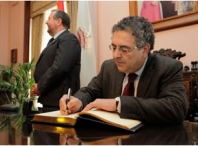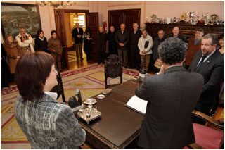 No acto o Alcalde de o Consejero intercambiaron agasallos. Silva recibiu do Alcalde un libro sobre a Muralla e pola contra o Alcalde recibiu un libro sobre Aragón e una xerigrafía.