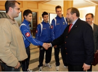 O Alcalde de Lugo, José López Orozco, o Voceiro Municipal, José Rábade, e outros membros da Corporación Municipal recibiron na Casa do Concello aos xogadores lucenses do equipo galego de fútbol sala sub 20 que a pasada fin de semana se corou campiona de España nesta categoría.