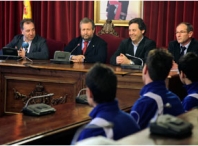O Alcalde de Lugo, José López Orozco, o Voceiro Municipal, José Rábade, e outros membros da Corporación Municipal recibiron na Casa do Concello aos xogadores lucenses do equipo galego de fútbol sala sub 20 que a pasada fin de semana se corou campiona de España nesta categoría.
