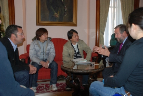 O Alcalde, José López Orozco, recibiu esta mañá no Concello ó equipo da televisión xaponesa NHK que estes días está en Lugo gravando un programa sobre a Muralla e o pasado romano da nosa cidade.