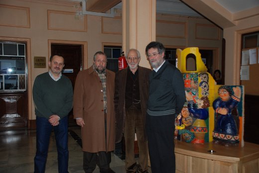 O escultor achegouse á Casa do Concello a última hora da mañá para ver a súa obra, que lle foi amosada por técnicos municipais e tivo ocasión de departir informalmente uns minutos co Alcalde, José López Orozco, e co Concelleiro Antón Bao, cos que coincidiu durante a súa visita.