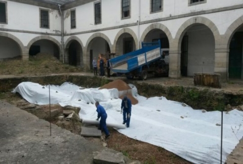 Así, como xa se anunciara, o Concello está traballando na liña relativa aos xacementos arqueolóxicos, xa que despois das catas arqueolóxicas levadas a cabo pola Xunta, quedaron grandes ocos no patio. Ao mesmo tempo amontonouse a terra que se sacou destas catas en diversas zonas do edificio e que producen un dano as estruturas do propio edificio. A seguinte acción será retirar a terra amontonada no claustro do edificio.