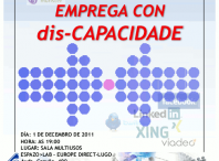 Desta maneira o xoves día 1 de decembro ás 19:00 horas vaise celebrar no Espazo>Lab unha xornada-debate baixo o título de Emprega con dis-Capacidade. Esta actividade está dirixida a empresas e público en xeral e, o Concello de Lugo, con ela quere contribuír a que exista un verdadeiro encontro e coñecemento entre as empresas e as organizacións que traballan pola intermediación laboral das persoas con discapacidade no noso territorio.