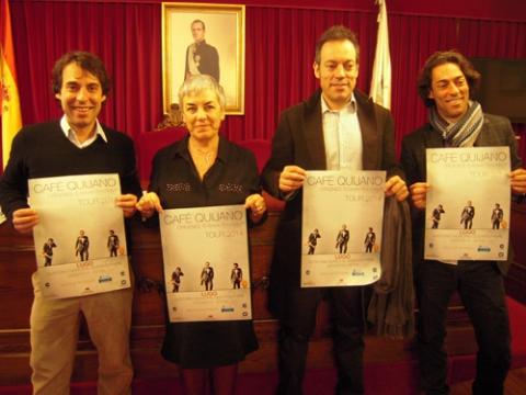 A Concelleira de Cultura, Turismo, Xuventude e Promoción da Lingua, Carmen Basadre, acompañada polos membros do grupo musical Café Quijano, presentaron o concerto que este grupo leonés vai a celebrar na cidade de Lugo.