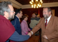O Alcalde de Lugo, José López Orozco, e o Presidente da Deputación, José Ramón Gómez Besteiro, acompañados do Alcalde de Sarria, Claudio Garrido, os tres dirixentes en funcións, recibiron este xoves no Salón de Plenos do Concello da capital ós participantes das V Xornadas Xurídicas que, por quinto ano consecutivo, organiza o municipio sarriano, en colaboración co Foro Xurídico Diego Pazos, e que reunirán na vila a partir de mañá a unhas 250 persoas, entre conferenciantes e público asistente. Os expertos, ademais de coñecer a Casa Consistorial luguesa, fixeron un percorrido pola cidade e pola Muralla.