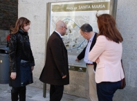 O tenente de Alcalde e Concelleiro de Turismo, Antón Bao; a Concelleira de Economía, Sonia Méndez; a Deputada de Economía, Pilar García Porto, e o director da Once en Lugo, Roberto Doval, amosaron hoxe as placas informativas en braille instaladas nas novas sinais turísticas do Casco histórico nunha visita que fixeron ó sinal situado na praza de Santa María.