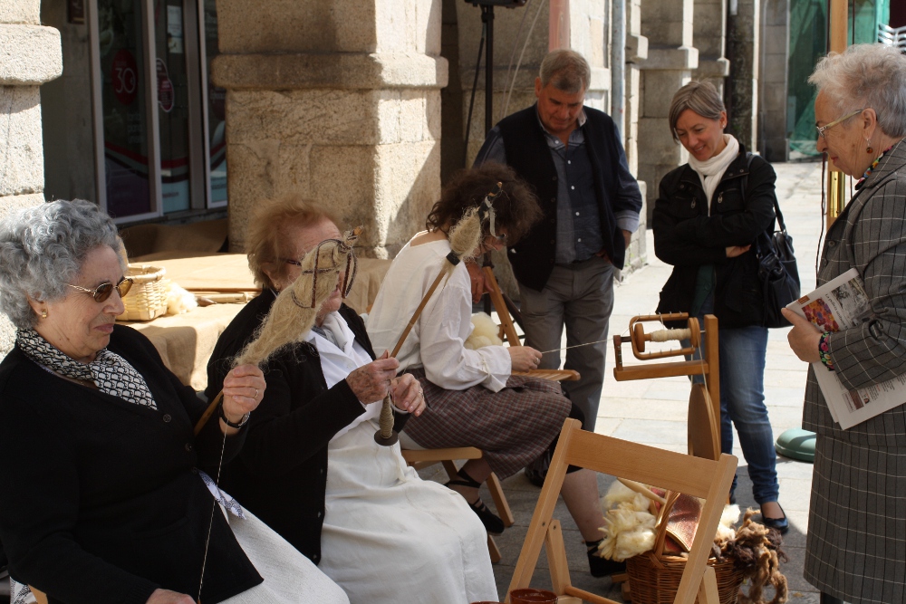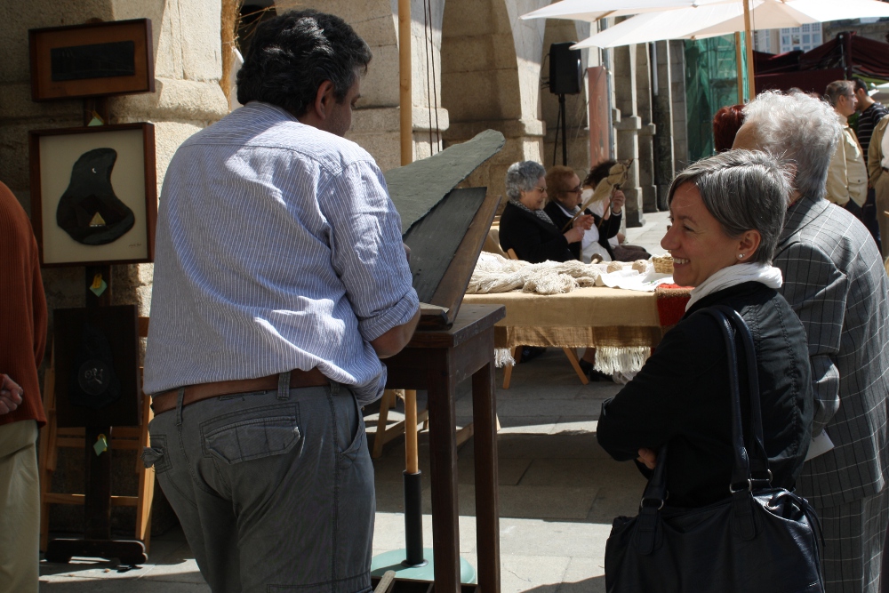 O tallista de pizarra de Navia de Suarna, André López Gómez; a fiadora de Lugo, Elena Yáñez; e a cardadora lucense Flor Pérez, amosaron hoxe o seu bo facer dentro da Mostra de Vellos Oficios que organiza a Área de Cultura e Turismo do Concello de Lugo. Mañá domingo serán Lluis Grao, cesteiro da Teixeira, en Ourense; a tecelá Anna Elisabeth Champaneyr e Ramón Villar, un canteiro de Guitiriz, os que farán as demostracións dentro da Mostra de Vellos Oficios. A concelleira de Infraestruturas, a nacionalista Paz Abraira, visitou a mostra e amosou o seu interés polo traballo que os artesáns realizan nas súas correspondentes especialidades.