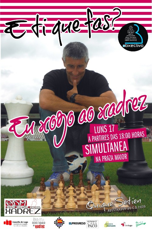 O entrenador do CD Lugo, Quique Setién, participará o luns na campaña “Ti que fas? Eu xogo ó Xadrez”, que desenvolven as Concellerías de Educación e de Deportes, a Escola Luguesa de Xadrez, a Asociación Cultural Xaquedrum e o Grupo El Progreso.