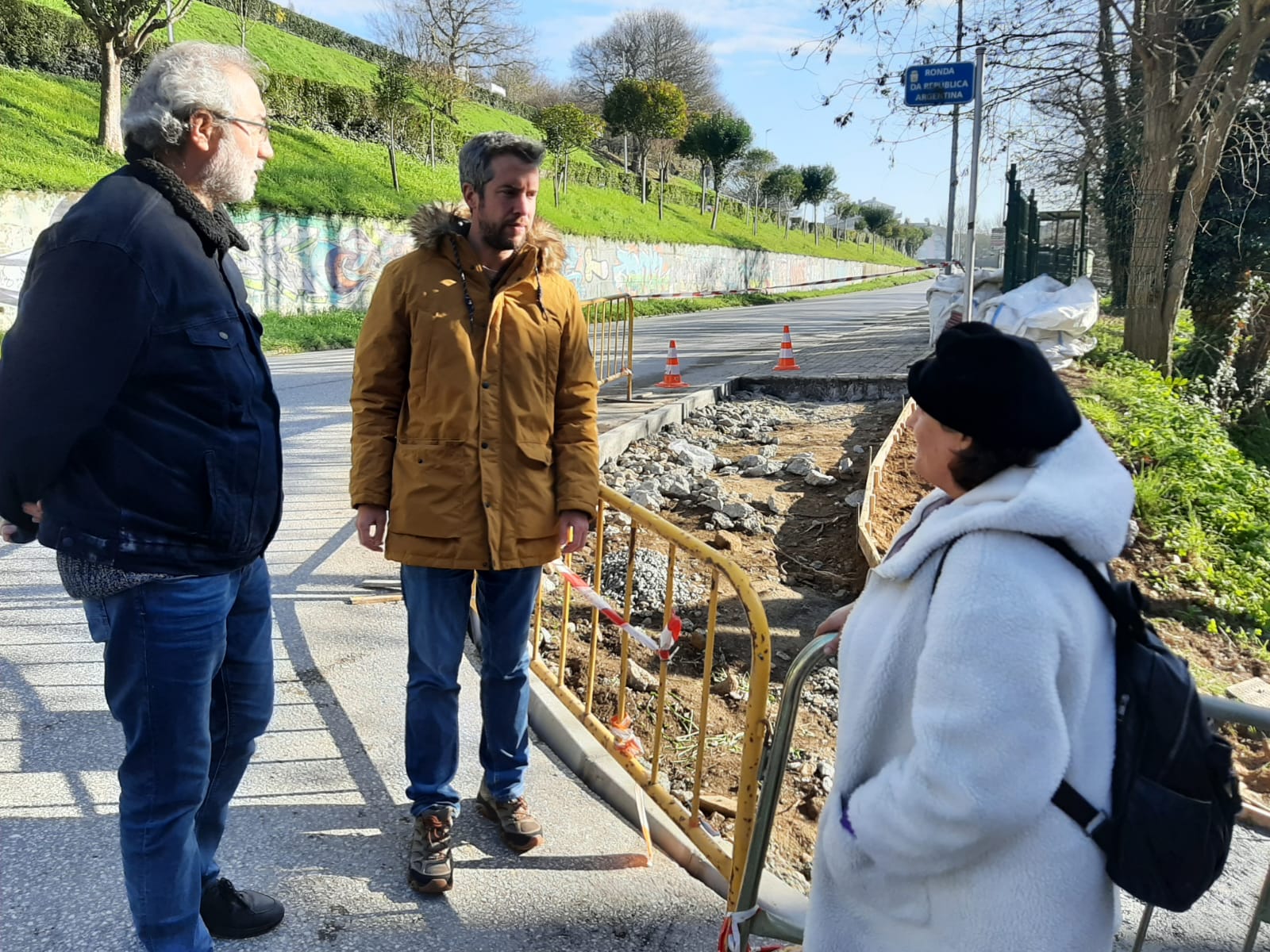 O Tenente de Alcaldesa e concelleiro de Mobilidade e Infraestruturas, Rubén Arroxo, xunto co edil de Infraestruturas Urbanas, Alexandre Penas, visitaron os traballos de ampliación da beirarrúa que a área de Mobilidade e Infraestruturas está a realizar na contorna da rolda da República Arxentina. Os traballos están a realizarse na unión de República Arxentina coa rúa Santiago, ampliando a actual beirarrúa para garantir un camiño peonil transitable.